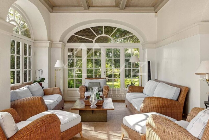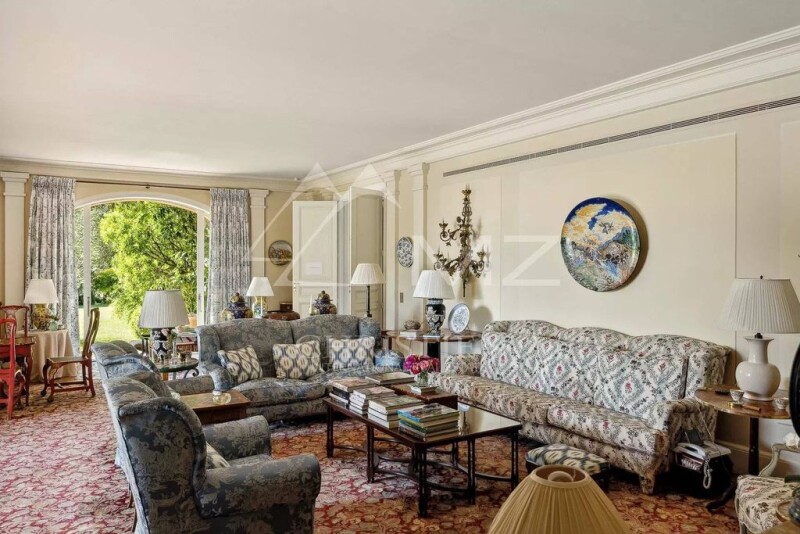 For lovers of homes imbued with elegance, nobility and charm, this majestic family property is set in rare, magnificent, almost flat, wooded grounds of more than 13,223 sqm, designed by Jean MUS, with a swimming pool, poolhouse and tennis court, offering uninterrupted views of the garden and the sea. It offers 800 sqm of living space, harmoniously divided between the reception areas on the ground floor, which extend onto a beautiful patio overlooking the garden, a large family kitchen, a TV lounge and 2 en suite bedrooms opening onto the garden. The first floor is entirely dedicated to the relaxation and privacy of its guests and offers 5 bedrooms, all en suite, including a master bedroom with bathroom, large dressing room and study opening onto a beautiful terrace overlooking the garden and the sea. An independent guests house with 2 bedrooms and an independent caretaker's cottage with 2 bedrooms give it the ultimate luxury of exceptional properties. The quality of life is enhanced by the privileged setting close to the amenities of Mougins village and Nice international airport, just 20 minutes away. An address, the home of a lifetime. Agency fees included and payable by the purchaser.