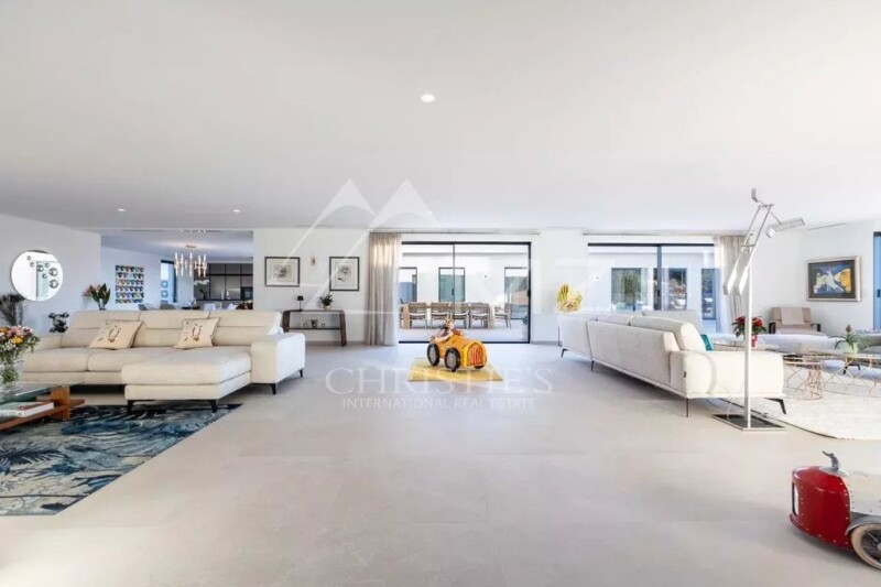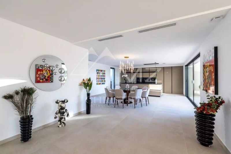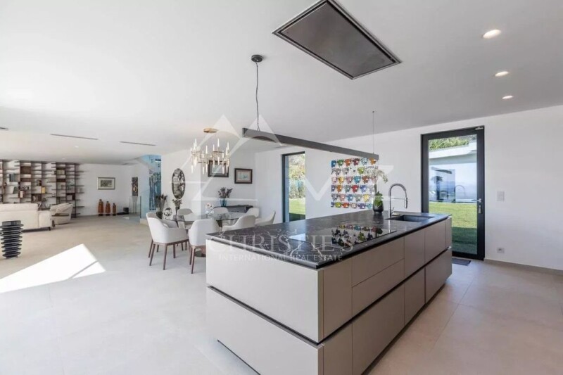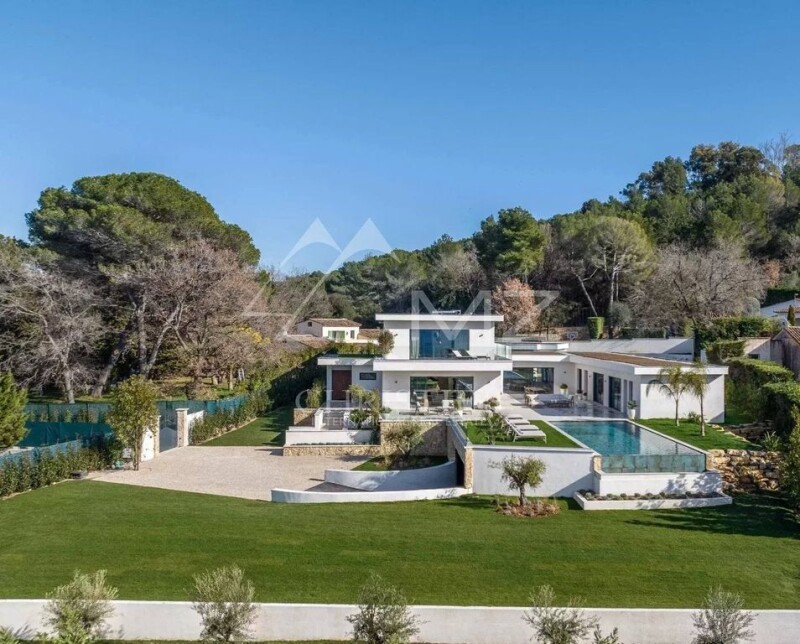 Rare - Situated in a dominant position on the heights of Cannes, in the residential area of Les Collines, 10 minutes from the Croisette and Cannes city center, this superb new contemporary-style property, with a total surface area of approx. 860 sqm, is set in 3,080 sqm of flat land and offers breathtaking views of the Esterel mountains and the sea in the distance. The main villa of over 500 sqm boasts a double reception room of approx. 120 sqm. Heated infinity pool, wine cellar, gym, games room, separate janitor's or guest house and an exceptional garage of over 250 m2 with space for over 12 cars (ideal for collectors) complete its many assets.