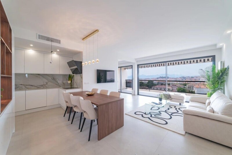 Located on the top floor of a luxury residence just a stone's throw from the town centre, this beautifully renovated flat enjoys lovely views over the sea and the historic Suquet district. Boasting top-quality appointments, it offers 90 m2 of living space with a terrace, as well as a 90 m2 rooftop terrace. The interior layout is as follows : - bright living room with fully-equipped open-plan kitchen, opening onto the terrace thanks to a large bay window, - en suite bedroom with shower room, also opening onto the terrace, - second bedroom with en suite shower room, - loggia with space for a washing machine, - third master bedroom with dressing room and en suite bathroom. - Guest toilet. Superb rooftop terrace of around 90 m2 with independent access. This flat is sold with a basement garage and cellar. The residence has a concierge service and includes fully enclosed grounds planted with trees and flowers.