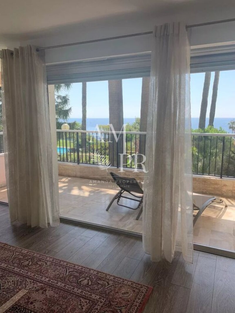 Superb contemporary apartment nestled in the California sector in a luxury residence including 2 swimming pools, tennis courts, 5 minutes from Cannes city center enjoying an open, quiet and residential environment. Located on the first floor of a luxury residence, this 4-room apartment has a Carrez surface area of 181.25 m². It consists of an entrance, corridors with storage cupboards, a separate high-end kitchen, fully equipped of approximately 14 m², a pantry/laundry room, a large living room-dining room with 'approximately 70 m² very bright and opening onto a terrace of approximately 14 m² facing south with a sea view of the Lérins Islands. 3 large en-suite bedrooms of approximately 16 m² all with shower room, toilet and cupboards. Two bedrooms give access to a large closed loggia of 21 m² with a view of the greenery. An en-suite bedroom has its own independent entrance and can be converted into a studio or office, for a total of 23.45 m² Carrez. The apartment has been completely renovated with quality services and high-end materials, reversible air conditioning, double glazing, electric roller shutters, blinds, fiber optic, exterior lighting, surrounded by a sunny landscaped park of more than 1 hectare, fully fenced and secure with 24/7 guard. Exceptional apartment, ideally located 5 minutes from public transport, 10 minutes from local shops, 10 minutes from schools, 40 minutes from Monaco, 10 minutes from the motorway, 20 minutes from the airport and 5 minutes from beaches. 2 parking spaces as well as 2 cellars complete this property. Sold furnished, no procedure in progress, guaranteed crush. État des risques et pollution: réalisé (2022-06-15).