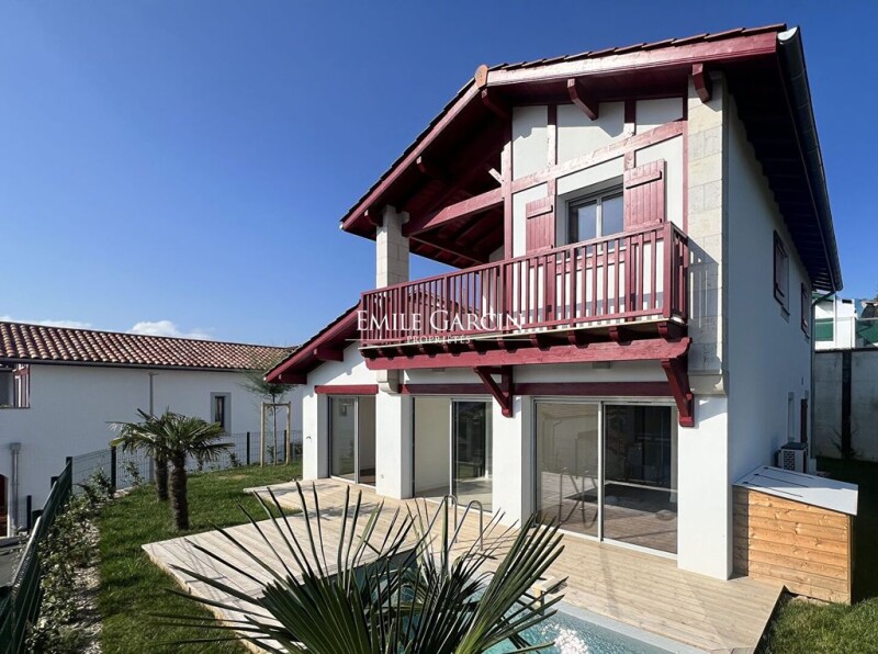 In a dominant position nestled in the heart of a residential and popular area of Socoa, in a small secure condominium, atypical villa from 2024 with quality services. It is composed on the ground floor of an entrance, library, 3 en-suite bedrooms, 2 of which open onto the swimming pool and its wooden terrace for moments of relaxation. Upstairs, pantry, kitchen to be fitted out, living room opening onto the sheltered terrace with beautiful unobstructed views from the Biarritz Lighthouse to La Rhune. Charming enclosed and pleasantly wooded garden. Several private parking spaces. This warm and rare villa in the area will seduce you if you are looking for a cozy place combining the comfort of a main residence with the advantages of being less than 800 m walk from the ocean and shops. An ideal living environment all year round. Condominiums of 8 units (No proceedings in progress). Annual expenses : 1200 euros.