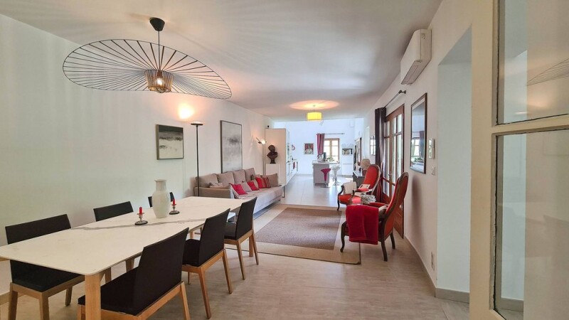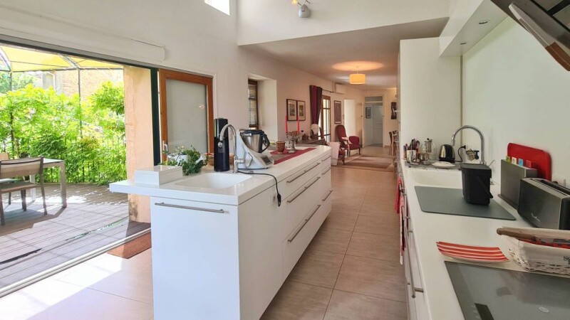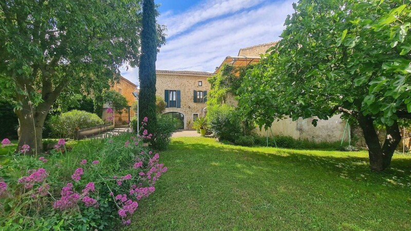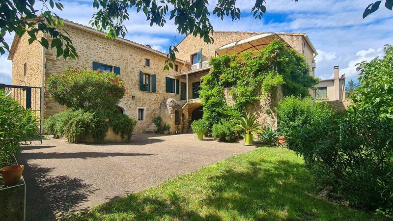 Benefiting from a beautiful landscaped garden of 1800 m2 with swimming pool in the heart of a preserved hamlet north of Uzes, this stone farmhouse of almost 300 m2 of living space + double garage and outbuildings, has benefited from a complete renovation some fifteen years ago. A terrace shaded by a wisteria extends along the south facade of the house and opens onto the main living level: entrance lounge with fireplace, 50 m2 living room with a refined atmosphere hosting lounge, dining room and superb, very well equipped kitchen with Corian worktop and full bay windows onto the terrace. Also on this level, a library office with custom oak fittings, master suite with view of the garden, shower room/wc and dressing room, and 2 other bedrooms sharing a bathroom with separate wc. Linen room and guest toilet. On the 2nd floor, a large TV lounge/play and reading room adjoins 2 additional bedrooms, one of which is in dormitory mode for accommodating grandchildren. It extends into a very beautiful bathroom with spa area. On the ground floor of the house, a family suite of approximately 50 m2 has direct access to the garden. On the ground floor there is also a wine cellar, a large storage room and a 50 m2 garage with automatic gate and charging station for electric vehicles. Well, garden outbuilding, heat pump, fiber,... A property of character with modern and quality services, contact us today to disco ver more.