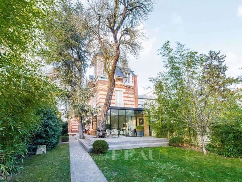 This 280 sqm property dating from the late 19th century is in Saint Cloud’s desirable Montretout neighbourhood a short distance west of the capital. Renovated throughout in 2013, it is set in a leafy 576 sqm south-facing garden with a double garage and outdoor parking spaces. It includes an extensively glazed double living/reception room bathed in sunshine and with a fireplace, a luxuriously kitchen, five bedrooms including a master suite with a dressing room and a bathroom, two shower rooms and a bathroom. On a total basement with a wine cellar, a laundry room and a spacious fitness/recreation room. In a prime location near the shops, schools and transport networks. État des risques et pollution: réalisé (2015-02-13).