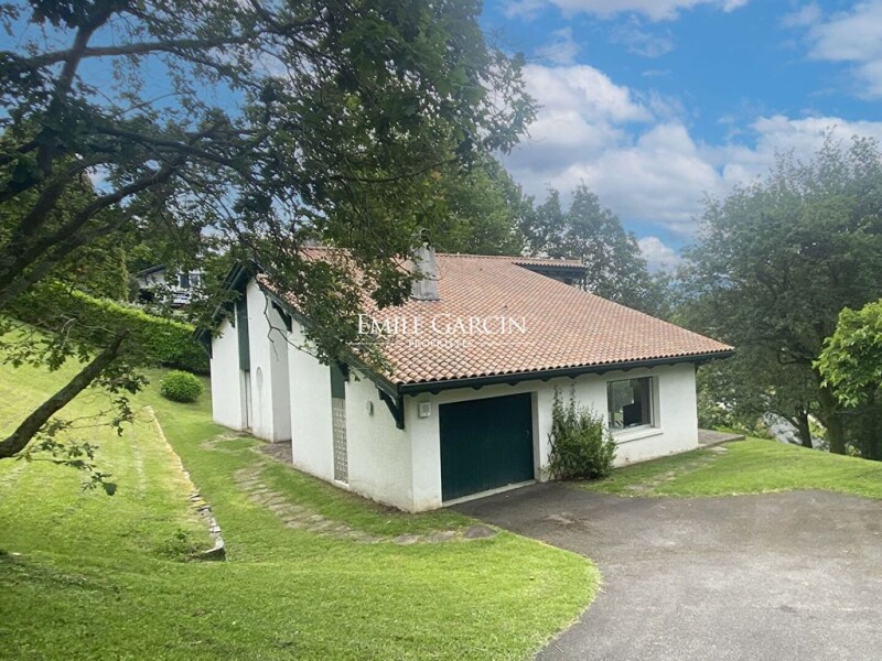 In absolute calm, on the hill of Bordagain in a dominant position with exceptional view of the mountains and the Rhune, located 20 minutes walk from the beach of Socoa and local shops. Built on a beautiful wooded plot of more than 2,000 sqm with swimming pool, large architect-designed house from 1975 of approximately 200 sqm. It consists of an entrance with cupboard, a living room with fireplace opening onto the terrace and the garden, an independent kitchen overlooking the garden, a courtesy toilet. A hallway leads to the sleeping area with five bedrooms equipped with cupboards, two shower rooms. The floor to be fitted out consists of a large room, attic, toilet, a large mezzanine overlooking the living room. Large garage and numerous parking spaces. Ideal for a renovation project, this villa will seduce you with its multiple layout possibilities in a preserved and sought-after environment. Selling price EUR1,290,000 including fees, of which 4% including tax (four percent including all taxes) of fees payable by the purchaser. Net seller price EUR1,240,000. (4.03 % fees incl. VAT at the buyer's expense.).