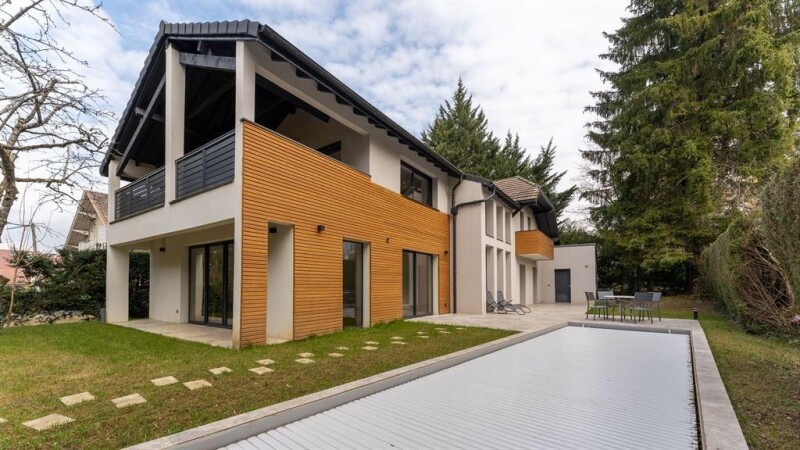 High end contemporary villa - with pool This large luxury villa, close to the lake and all amenities, enjoys a quiet and peaceful environment. The interior layout offers a large and bright living space with access to a terrace and a heated swimming pool. Less than 10 minutes walk to the lake. Additional information and file on request. High quality services: - Sought-after area - In a quiet area - Close to schools and all amenities - Easy access to Geneva - Triple exposure - With the last standards of insulation - Heating by heat pump - Large openings.