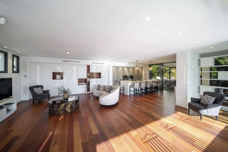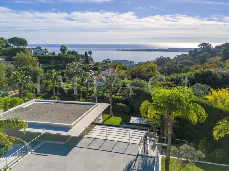 SUPER CANNES - CONTEMPORARY VILLA - PANORAMIC SEA VIEW - QUIET AREA Located in a residential area and built on a plot of more than 2100m², renovated villa in contemporary style with high quality materials, facing south offering a surface area of approximately 220sqm (Loi Carrez:202sqm), with more than 500sqm terraces enjoying a magnificent view of the Lérins Islands. GROUND FLOOR Spacious living room opening onto both dining room opening onto a large terrace with panoramic views of the planted garden and the Lérins Islands; and overlooking a high-end open fitted kitchen, on a covered terrace with outdoor dining area. HIGHER LEVEL A spacious master bedroom opening onto a private terrace with bathroom and shower. LOWER LEVEL A suite opening onto a double terrace with shower room One bedroom A shower room A toilet GARDEN LEVEL An independent studio with equipped kitchen and shower room An independent apartment with living room, kitchenette, bedroom and shower room. Large heated swimming pool Pool house Garage Parking for more than 10 vehicles État des risques et pollution: réalisé (2024-10-14).