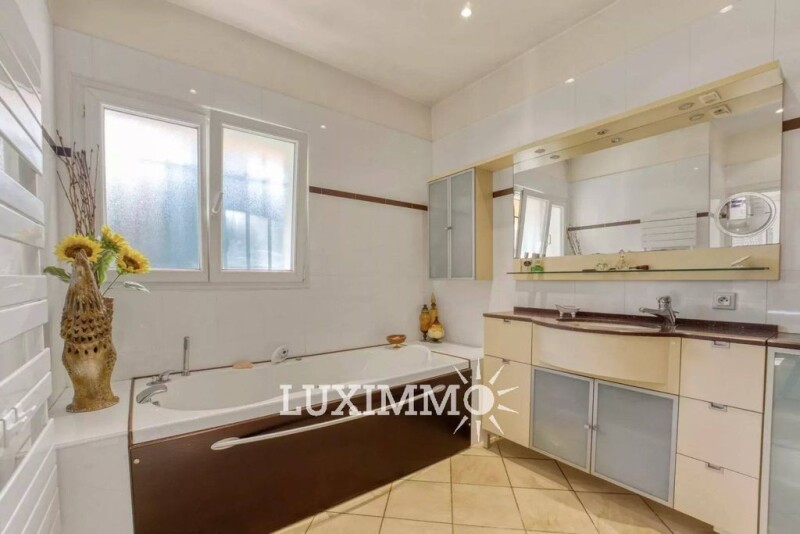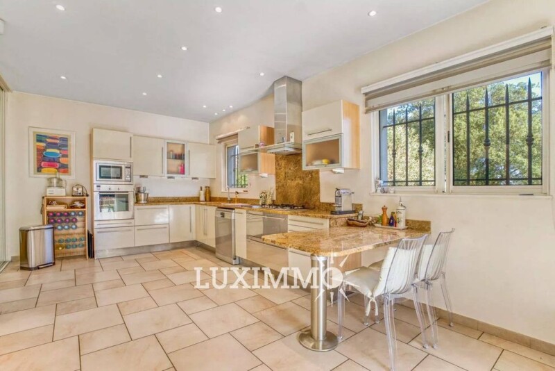 MANDELIEU - Located in a residential area, with views of the surrounding hills and close to beaches, this 289 m² villa is built on a 2000 m² wooded plot with pool. Garden level: large living room with fireplace, separate fitted kitchen opening onto terrace and pool area. This level also includes 2 bedrooms with bathrooms and wc, as well as a separate wc. First floor: 2 bedrooms with shower rooms and wc, opening onto a terrace. Basement: 1 large garage, two storage rooms Additional features: 1 carport and many parking spaces. We are a real estate agency that focuses on the needs of its customers. Our team of experienced professionals works rigorously to facilitate each step of our transactions. « Informations on the risks to which this property is exposed is available on the Géorisques website : georisques.gouv.fr ».