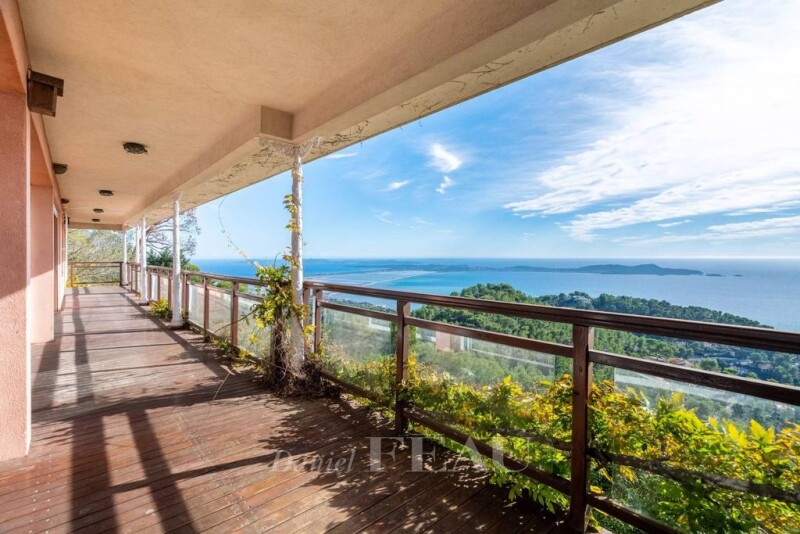 Sole Agent. This fully south-facingf villa dating from 1998 is on the heights of the private La Californie residence in Carqueiranne. Offering 300 sqm of living space, it is set in a near 2900 sqm plot benefiting from no facing neighbours and commanding a sumptup*ous panoramic view of the Mediterranean, the Presqu'ile de Giens, l'ile de Porquerolles and Carqueiranne harbour. Accessed by a gently sloping drive leading to a double garage, it includes a garden-level accessed by means of a lift and a staircase and comprising a 70 sqm living/reception room, a recreation room, a kitchen, a utility room and a conservatory. The upper floor comprises four bedrooms and two bathrooms. The villa is bathed in sunshine and most rooms benefit from superb open views. With planning permission, a swimming pool would be possible. Some modernisation is required to exploit the huge potential. État des risques et pollution: réalisé (null).