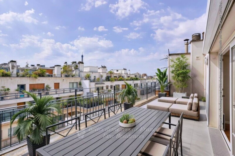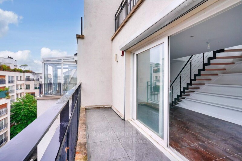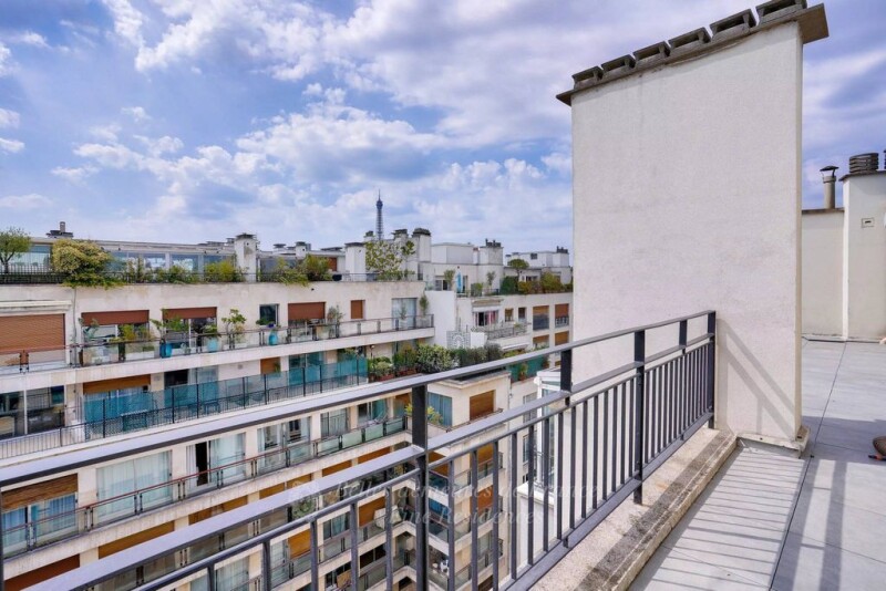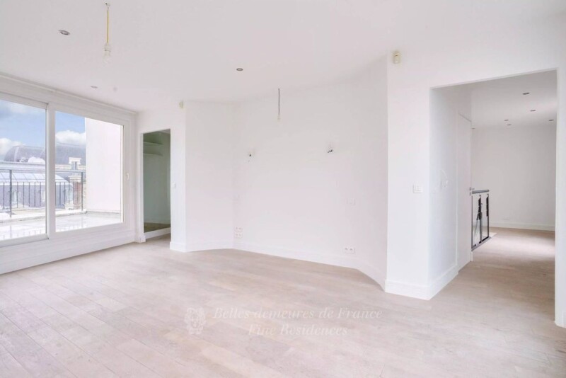 Etoile - Place des Etats-Unis. This renovated near 90 sqm duplex apartment is on the 7th and 8th floors of a well-maintained mid 20th century building. It includes a living/reception room, a kitchen, and a suite opening onto terraces enjoying open views over the rooftops. With a cellar.