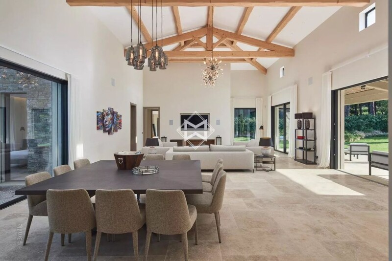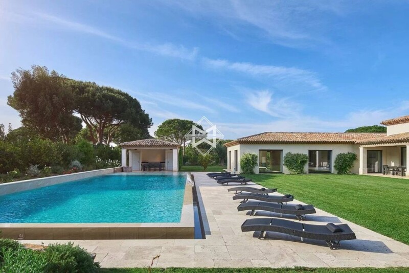 Rare and exceptional, newly built outstanding property nestled in greenery, in a nuisance-free environment, offering the most luxurious amenities, 800 metres only from Salins Beach. This elegant property with refined finishings, sold furnished, develops a surface of approx. 550 m² and is composed in particular of a large reception room of 130 m² with 6-metre high ceilings, and 5 suites and 2 maid rooms. Harmoniously mixing Tropezian charm and modernity, this property has been built in compliance with good construction practices, with noble materials and sophisticated decoration. Cinema room, sauna area, fitness room. In a natural and quiet environment, the property is set on a large landscaped plot of 3126 m² designed around its large swimming pool, with a pool house and a summer kitchen. State-of-the-art home automation and surveillance systems, air conditioning, sound system, outdoor lighting, garage of 64 m², many parking areas. A must-see property, with generous volumes, located in one of the most sought-after areas in Saint-Tropez.