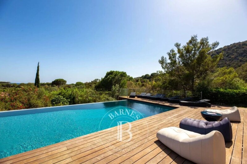 RV1383 - Palombaggia Beachfront property located in Palombaggia, a confidential and prestigious address. This 5,682.43 sq.ft villa with sea and scrubland views offers a living room, dining room with fireplace opening onto a spacious terrace, separate kitchen and storeroom. 10 bedrooms, including 2 master bedrooms with private shower rooms. A cinema room, a sports room, a caretaker's cottage and 2 garages complete this property. The villa is set in landscaped grounds of around 118,404 sq.ft with a heated swimming pool and pool house. A unique location that brings Corsica to life in all its beauty in a popular seaside resort not far from the most beautiful beaches of Porto-Vecchio and its international airport. Fees are payable by the vendor. Take advantage of the virtual tour!.