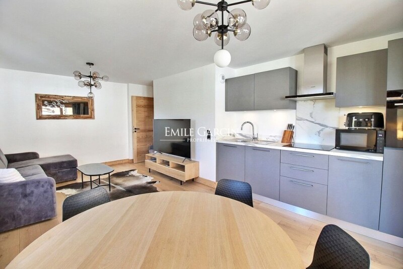 In the Rochebrune area, just minutes from the ski lifts and the center of Megève. Stunning 59.40 m² apartment featuring an entrance with storage, a cozy living room, an open kitchen, and access to a beautiful terrace. The night area includes two comfortable bedrooms, a bathroom, and separate toilets. In excellent condition, it combines modernity and practicality. A cellar, a ski locker, and a private underground parking space complete the property. Its prime location is ideal both in winter and summer. Condominiums of 18 units (No proceedings in progress).