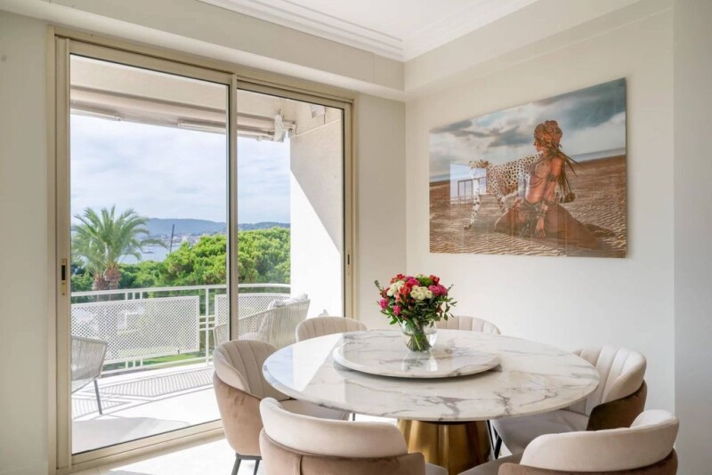 Cannes Pointe Croisette, Magnificent luxury apartment entirely renovated with top-of-the-range materials, 96 sqm with sea view, two terraces in a secure residence on the Croisette. Accommodation, an entrance hall, a fully-equipped kitchen opening onto the living/dining room opening onto two beautiful terraces offering a beautiful view of the sea and greenery. The night space comprises a master bedroom with balcony and marble shower room, and a second en suite bedroom with its own shower area. A cellar completes this property. Contact us today to find out more.