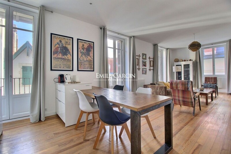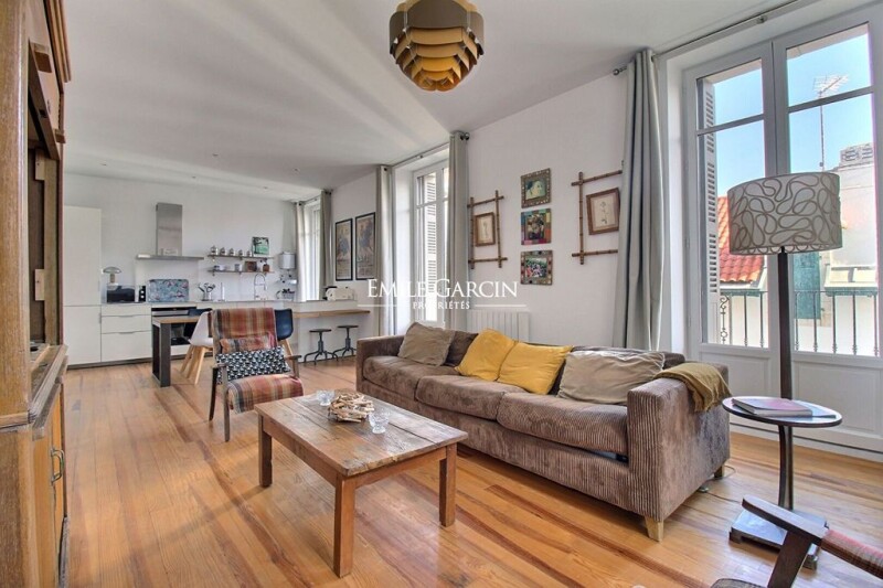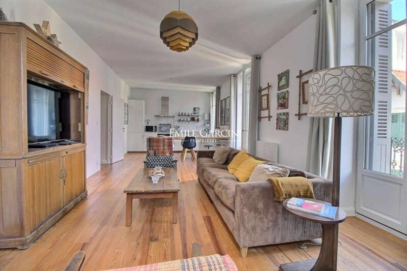 Charming apartment of 88 sq.m located on the second floor of a beautiful period building in the Les Halles district in the heart of Biarritz. In perfect condition throughout, this property is composed of an entrance, a spacious living room backing onto a balcony, an open kitchen, a master suite with shower room, two additional bedrooms, a separate shower room and a separate WC. Sold with a cellar in the basement.