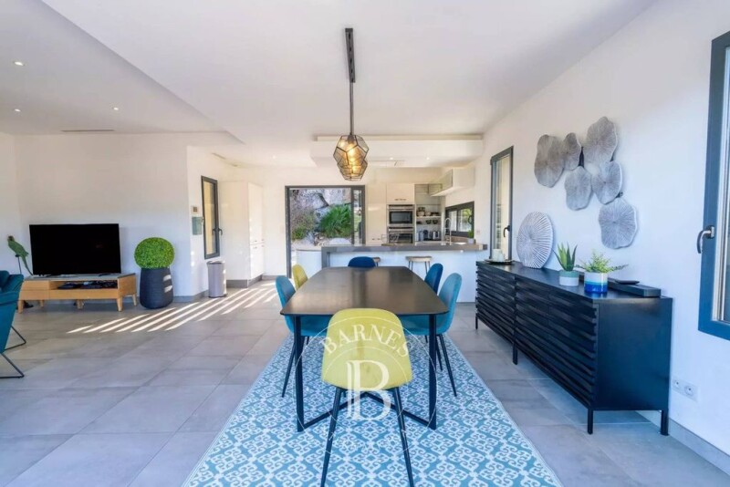 Located in Porto-Vecchio, a gem of South Corsica, this 1,615 sq.ft. villa on two levels offers breathtaking views of the mountains. Its bright living space, including a living room, lounge, and fully equipped open kitchen, opens onto a terrace with a bioclimatic pergola, providing access to the pool and spa. The villa features two bedrooms. A master suite with an en-suite shower room and direct access to the pool, and a second bedroom with a private shower room and a balcony connected to the living area. An independent studio with a laundry room completes this property. Set on a 11,517 sq.ft. plot, the villa is surrounded by trees and natural rock formations, offering a peaceful and authentic setting. Agency fees to be paid by the seller. État des risques et pollution: en cours (null).