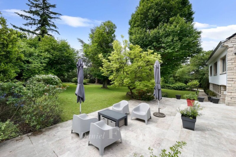 This mid 20th century property hidden from view in over 2000 sqm of beautiful leafy grounds offers a total of 460 sqm of floor space and over 300 sqm of living space. Benefiting from a refined contemporary decoration, it includes a raised ground floor comprising a 73 sqm triple living/reception room bathed in sunshine and opening onto a terrace and the garden, and a separate equipped kitchen. Two spacious bedrooms, a shower room, a wc, and a master suite with a bathroom, dressing room and wc are upstirs. The top floor comprises an attic room with a soaring ceiling and Velux windows which could easily create two further bedrooms or a home cinema. The garden level comprises a further bedroom, a bathroom, a wc and a utility room. On a basement with a storage room, an air-conditioned wine cellar and technical premises. Mainly south-facing, the property was renovated throughout in 2010, and has been carefully maintained ever since. In a residential neighbourhood near Parc Aubert, 600 metres from Blanche de Castille School and a 15-minute drive from the International School. État des risques et pollution: réalisé (null).