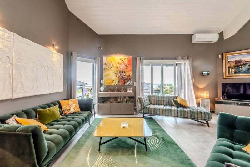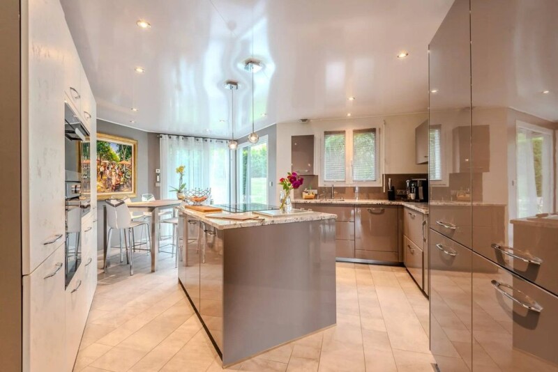 Discover this magnificent contemporary villa of 196 m² located in an exceptional setting on the heights of the golf course, built on a 1181 m² plot of land. Combining charm and generous spaces, this property offers high-end features and a breathtaking view of the lake. Upon entering, you will find a spacious hall opening onto a bright cathedral-style living room with large bay windows. The modern and functional kitchen opens onto a terrace bathed in light. The ground floor also includes a bedroom, a bathroom, a toilet, a dressing room, and an office. Upstairs, you will find three additional bedrooms, a shower room, and a lounge library area opening onto a closed and glazed tropézienne with panoramic views. The basement, over 100 m², with a double garage, cellar, and laundry room, offers numerous possibilities for customization according to your needs. The exterior of the house is equally impressive with a granite terrace, an outdoor pool, a landscaped garden, and a garden chalet. A large outdoor parking area is also available. This property offers a stunning view of Lake Geneva and the surrounding area, in a calm and secure environment, close to amenities, schools, and transportation. "Information about the risks to which this property is exposed is available on the Géorisques website: [georisques.gouv.fr]( Agency fees payable by vendor - Montant estimé des dépenses annuelles d'énergie pour un usage standard, établi à partir des prix de l'énergie de l'année 2023 : 4010€ ~ 5530€ - Les informations sur les risques auxquels ce bien est exposé sont disponibles sur le site Géorisques : www.georisques.gouv.fr - Mallory LOURDAULT - Agent commercial - EI - RSAC Thonon les bains 480 262 914 État des risques et pollution: réalisé (null).