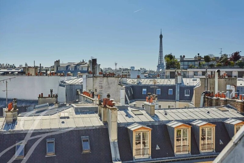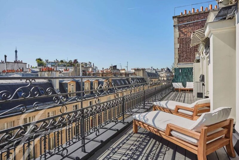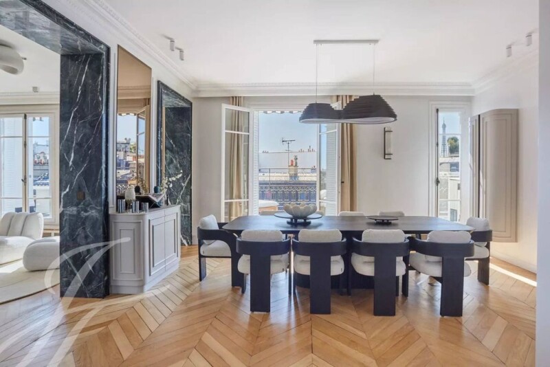 Paris 16, in the heart of Victor Hugo. In a high-end Haussmannian building, exceptional apartment of 272 m2 benefiting from a 43 m2, full-sun, ground-level terrace with a view of the Eiffel Tower. Duplex on the 6th and 7th floors, renovated by an architect, it is composed as follows : On the 6th floor: - Entrance, - Spacious double living room opening onto the terrace, - Dining room also with terrace access, - Superb kitchen with wine cellar, - Three beautiful bedrooms with bathrooms, On the 7th floor: - Fabulous 70 m2 master bedroom with private glass roof, - Laundry room High-end amenities, air conditioning, beautiful volumes, perfect layout without loss of space. A large cellar in the basement is also included.