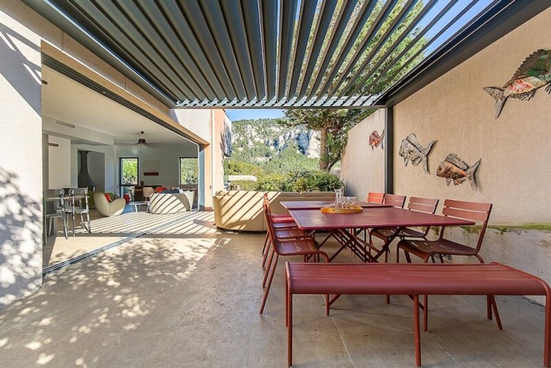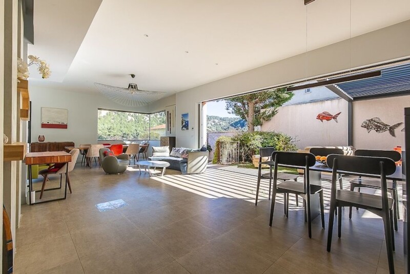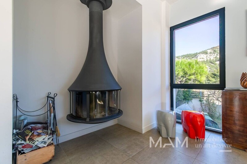 On the edge of the Parc des Calanques in an unspoilt and incredibly peaceful area, this house was completely renovated and extended in 2018. Everything has been designed to make life easy and peaceful, with all modern, contemporary features. Once inside it opens into a bright and airy large living room, with its huge sliding doors, opens onto the terrace sheltered by its bio-climatic pergola. The living room offers a panoramic view of the calanques. A magnificent decorative wood burner in the centre adds character and warmth to this beautiful room. The open-plan Leicht fitted kitchen and dining area opens onto the living room. On the same level is a parental area with bedroom, private bathroom and dressing room. Integrated reversible ducted air conditioning. Upstairs are the 3 children's bedrooms and a separate bathroom. A study area and terrace offer sublime views of the hills. On the garden side, a final bedroom and shower room can accommodate friends or family. Utility room. A basement now used as a large air-conditioned wine cellar could also become a family room or music room. Superb terraces with a fabulous swimming pool, and an off road parking space. Contact us today to find out more.