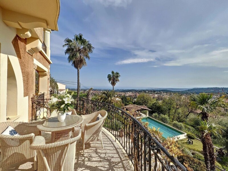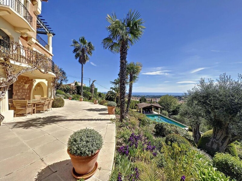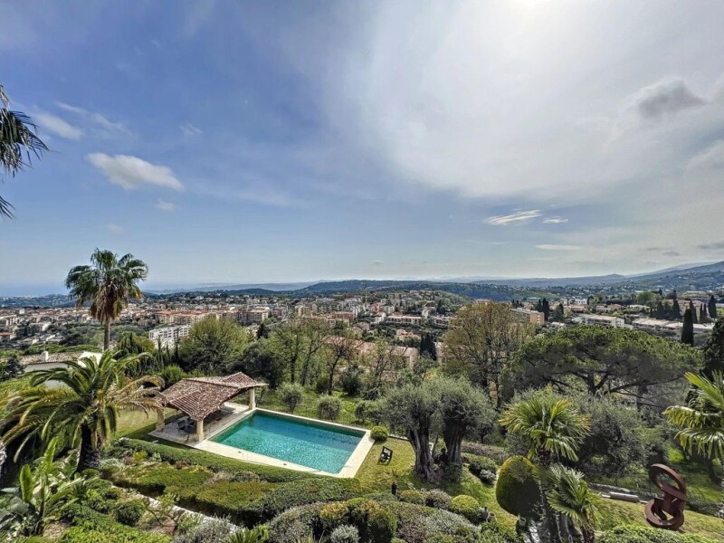 Beautifully presented luxury 270 m2 property in the medieval town of Vence. Dominant position, panoramic sea view from Nice to Antibes. Mediterranean garden of 2,000 m2 decorated with swimming pool and pool house. This sumptuous house includes 5 bedrooms, 4 bathrooms and a shower room, 7 toilets. Kitchen, dining room, partly covered terrace on garden level. 3 front-facing lounges on ground floor, with bedroom and bathroom, laundry room. Upstairs, 4 bedrooms, 3 with en suite bathrooms and toilets. A 5,400 m2 olive grove can be acquired on the lower level, should you wish to create your own olive oil....... Contact us today to find out more.