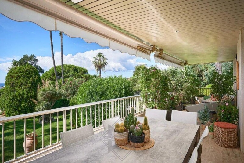 In a small high standing residence with caretaker and swimming pool, Benefiting from a panoramic sea view, Very nice 4-room apartment, south facing with a large southwest corner terrace,, Accommodation of 123,55m2 composed as follow : A vast living, opening on a large approx. 38m2 terrace with a beautiful view on the sea and the islands of Lerins, the swimming pool and the garden A master bedroom with sea view, a complete bathroom (bath, shower, toilet) storage cupboard. A second guest bedroom, with its own bathroom and wc. Fully equipped kitchen fitted with made to measure modern units. A third bedroom which can have its independent access with shower room. Included in the sale is a basement private double garage and a storeroom. Excellent opportunity, contact us today to find out more.