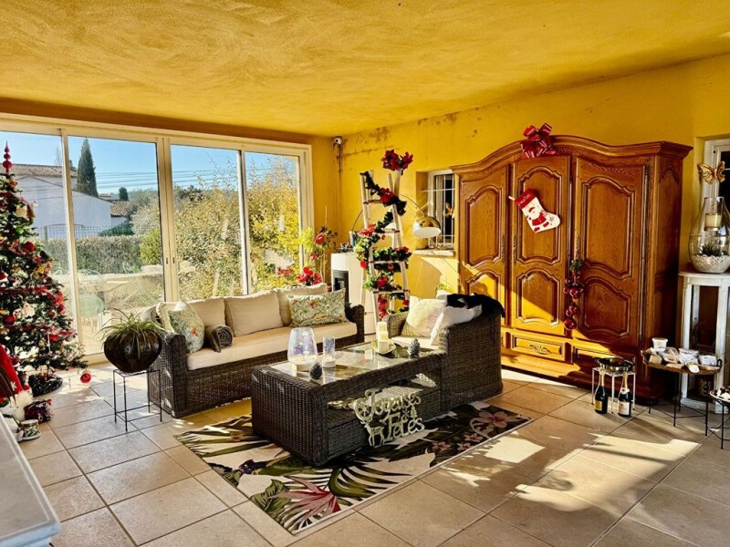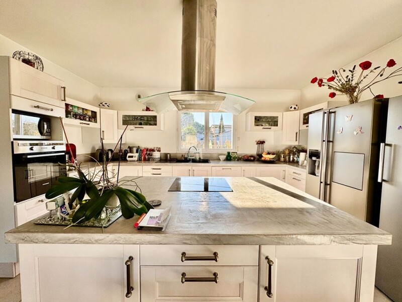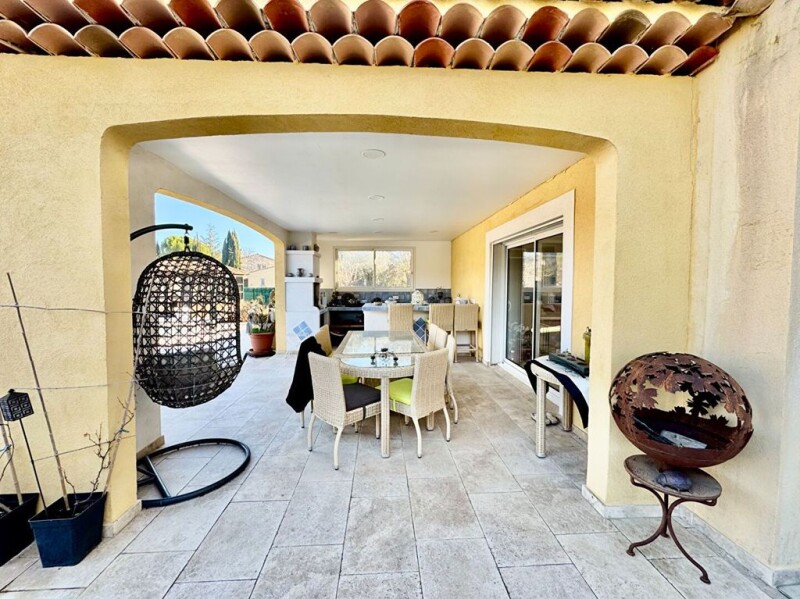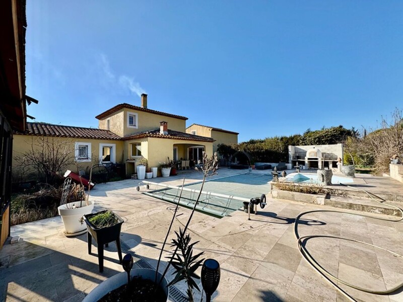 Superb house for sale in the charming commune of Cabries. Built in 2012, this modern property benefits from excellent insulation, guaranteeing comfort and energy savings. Set on a 2470 m2 plot, this 180 m2 house is a true haven of peace, complete with swimming pool and outbuildings, all located in a quiet, residential neighborhood. On the first floor, you'll be greeted by a spacious entrance hall leading to a bright living room, with a fireplace creating a warm and welcoming atmosphere. The open-plan, fully fitted and equipped kitchen is ideal for entertaining. A living room with fireplace and TV area. The covered and enclosed terrace offers a beautiful reception room, perfect for entertaining your guests in a pleasant setting. The master suite, with its dressing room and private shower room, promises peaceful nights. A toilet completes this level. Upstairs, two bedrooms offer generous space for the whole family, accompanied by a bathroom and toilet. To top it all off, a garage and a 100 m2 outbuilding offer numerous possibilities: create a spacious independent apartment or a space for a professional activity. Summer kitchen, spa and swimming pool complete this property. Don't miss this unique opportunity to acquire a house combining comfort, modernity and potential in a privileged setting. Come and discover it today.