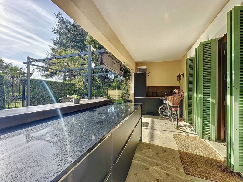 In Cannes, at the foot of the prestigious Oxford district, in a luxurious belle époque style residence completely renovated recently, this vast garden level apartment has many advantages. It consists of an entrance pleasantly leading to the imposing living room and its kitchen facing south, and opening onto a terrace with summer kitchen, two en-suite bedrooms with their bathrooms and access to a second terrace on the other next to the apartment, numerous cupboards and storage spaces, a laundry room, and a guest toilet. A private garden of more than 260 m² to the West links the two terraces, and has private access to the residence's park. This apartment also benefits from indoor parking. The condominium has an indoor swimming pool, a sauna, and a gym. Very nice services.