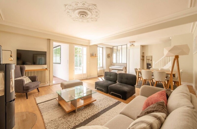 Have a look at this charming house for sale, built in 1860: a rare opportunity in the high demand area of Nantes (Mellinet). You can enjoy 152 sq. m of living space in the house. The property also has a terrace. The house layout begins with an attractive entrance hall. Further to this, you will find a bright, spacious living room. The accommodation comprises three bedrooms. Its wonderful natural light, its good condition and its brightness are among our favourite features.