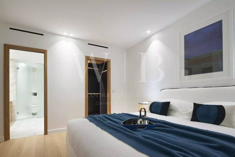 Located in the heart of La Californie area, in a prestigious and secured residence with swimming pool and caretaker 24/7, exceptional top floor 3 bedrooms apartment of 144 sqm opening onto a first terrace of about 24 sqm facing south and benefiting from a rare roof terrace connected by private elevator, fully furnished and wooded of 140 sqm, decorated with a jacuzzi, relaxation area, dining area, shower and summer kitchen, all enjoying a spectacular view of the sea, the Lérins Islands, the Palm Beach, the bay of Cannes until the sunset on the Esterel mountains. In a resolutely contemporary style and with very high-end services, the apartment consists of an entrance, a double living room and its dining room with fully equipped open kitchen, three bedrooms each with bathroom and dressing rooms en suite, a laundry area, many cupboards and guest toilets. A cellar and a large double garage in the basement complete this rare and unique penthouse currently for sale in Cannes.