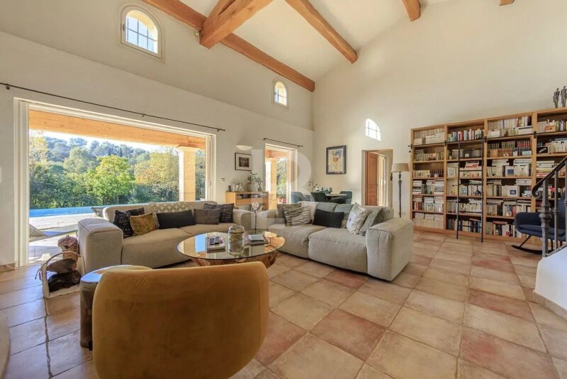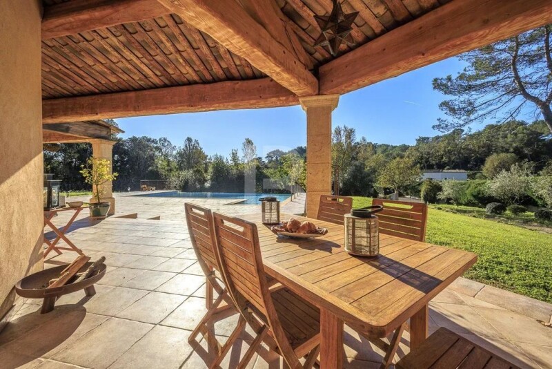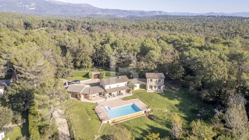 CO-EXCLUSIVITY. Ideally located in a gated and secure estate near the village of Valbonne, this stunning Provençal-style villa combines charm and tranquillity. Nestled on a landscaped plot of 5,392 m², this exceptional property offers absolute peace, a spacious, private garden, and a beautiful infinity pool measuring 11 x 5.5 m. The home, designed for family comfort, is arranged on a single level, featuring a grand entrance hall, a living room with fireplace, a fully equipped kitchen, two en-suite bedrooms, a gym, and a large versatile room that can serve as a cinema, fifth bedroom, or playroom. Upstairs, two additional bedrooms share a bathroom. Additional highlights include a large basement, a carport, a recently renovated roof, underfloor heating, double glazing, and fibre optic connectivity for modern comfort. The bonus? Direct access to the forest, perfect for family walks or outdoor activities in nature. The flat, mature, and landscaped grounds also include a pétanque court. For information on the risks to which this property is exposed, visit the Géorisques website: georisques.gouv.fr. État des risques et pollution: réalisé (2024-10-09).