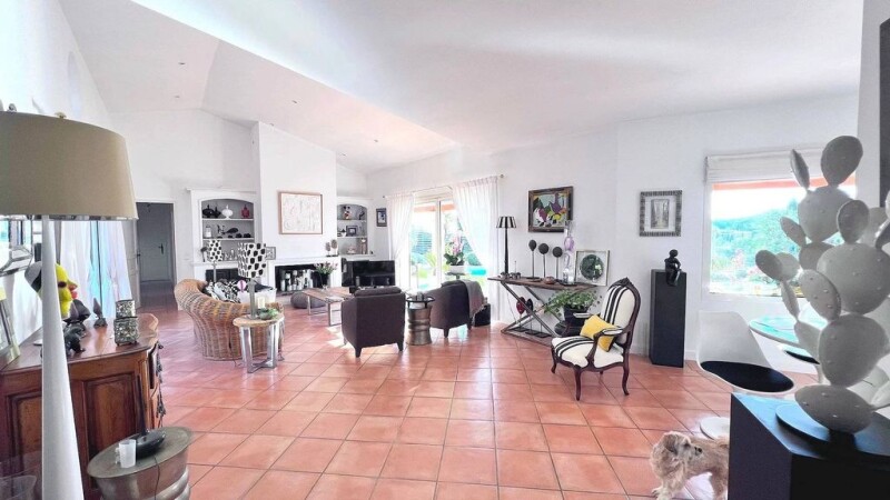 Beautiful property, mainly on one-level, benefitting from an open view onto the surrounding countryside. Inside this lovely home, convivial light and bright spacious living-room with fireplace and dining area leading out to the pool area, a fitted kitchen, 4 bedrooms and 3 bathrooms/shower-rooms. Great outside terraced areas with cover ideal for dining in those hot summer months, should you get too hot you can take a dip in the inviting swimming pool...... Easy to maintain, flat garden laid out with Mediterranean plants and trees. There is a secure garage and parking area. The property is connected to mains drainage.