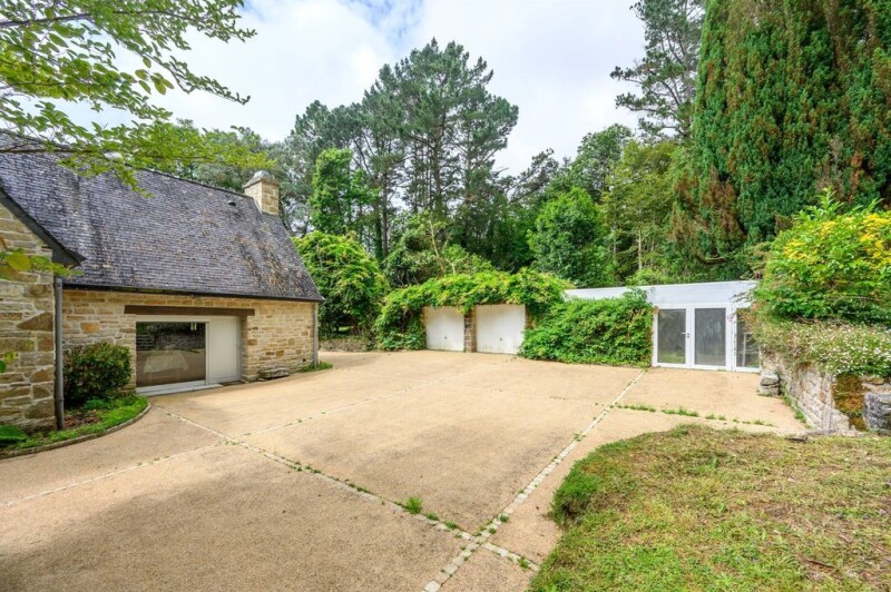 Exclusive Listing. Located in the sought-after commune of Plomelin, just 8 kilometers from the center of Quimper, this property offers an exceptional setting that is both peaceful and privileged. Positioned on a hill, it provides panoramic views of the maritime river and sits on over one hectare (10,852 m²) of enclosed land, with a landscaped park featuring a variety of tree species that create a true green oasis. The outdoor space is perfect for relaxing, entertaining guests, or simply enjoying nature in complete privacy, without any direct neighbors. This stone house, built in 1982 and offering approximately 187 m² of living space, has been designed to provide optimal comfort while retaining an authentic and warm atmosphere. It features five bedrooms, including a master suite on the ground floor, a study, two bathrooms, three WCs, a large laundry/boiler room, an attic with storage space, and a spacious double garage. Additionally, there is a greenhouse and a beautiful terrace overlooking the garden, creating an ideal spot for enjoying sunny days. Renovation work is required, allowing future owners to personalize the house to their taste. The ground floor includes: A welcoming entrance hall leading to a large corridor with built-in storage (closet and shelves) for practical and organized living. A spacious living/dining room, filled with natural light thanks to large windows that offer a peaceful view of the park. The separate kitchen is fully equipped and furnished, providing a functional space for preparing meals in serenity. Separate WCs with convenient built-in storage and a hand-wash sink. A study, ideal for working from home or creating a quiet and private space. The master suite with its own walk-in closet and en-suite bathroom featuring a double sink, bathtub, and WC for ultimate comfort on the ground floor. Upstairs, you'll find: A corridor with additional built-in storage (closet and shelves). Four bedrooms, each offering a bright and cozy atmosphere with lovely views of the garden. Separate WCs. A bathroom with a sink, bidet, and bathtub, ensuring ample space for relaxation and comfort. The living room features a traditional fireplace, adding warmth and charm, especially during the winter months. The house is heated by a Chappée propane boiler. The windows are single-glazed, except for those in the living room, dining room, and kitchen, which are equipped with double-glazed wooden windows, offering both better thermal insulation and added aesthetic appeal. The wooden shutters enhance the home's authentic character. The garden is fully enclosed, guaranteeing absolute peace and privacy, and the property is accessed through a motorized gate. This property stands out not only for its exceptional location but also for its ideal geographical position: just 8 kilometers from the center of Quimper, providing easy access to shops, schools, and services while still enjoying the tranquility of the countryside. The Odet maritime river is only 100 meters away on foot, perfect for pleasant walks along the riverbank. Beaches and a golf course are just minutes away, offering a varied and dynamic lifestyle. Both the airport and TGV train station are accessible within 15 minutes, making travel convenient for those wishing to enjoy the region’s benefits while staying well-connected to other destinations. This property is a true country home, perfect for those seeking serenity while being close to amenities. It is a rare and exceptional find on the real estate market, offering many possibilities for customization. An opportunity not to be missed for nature and history enthusiasts.