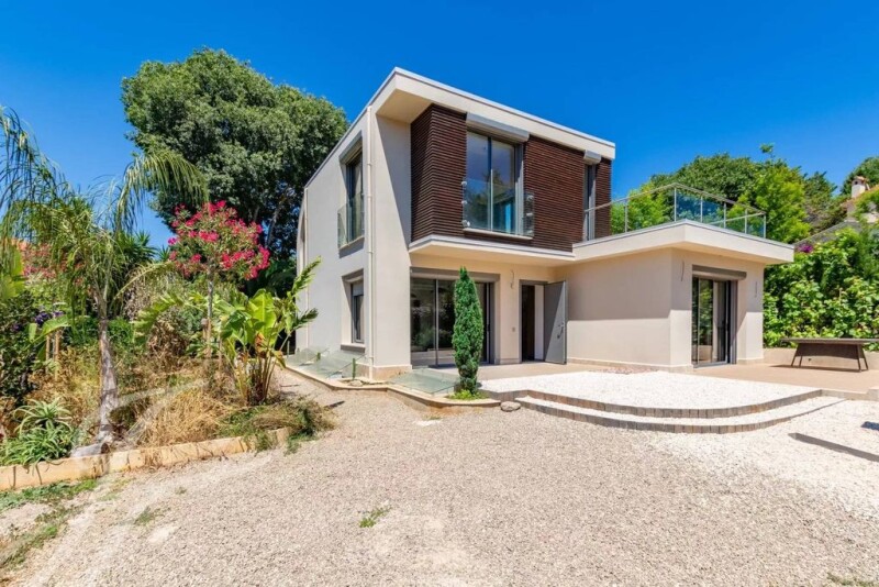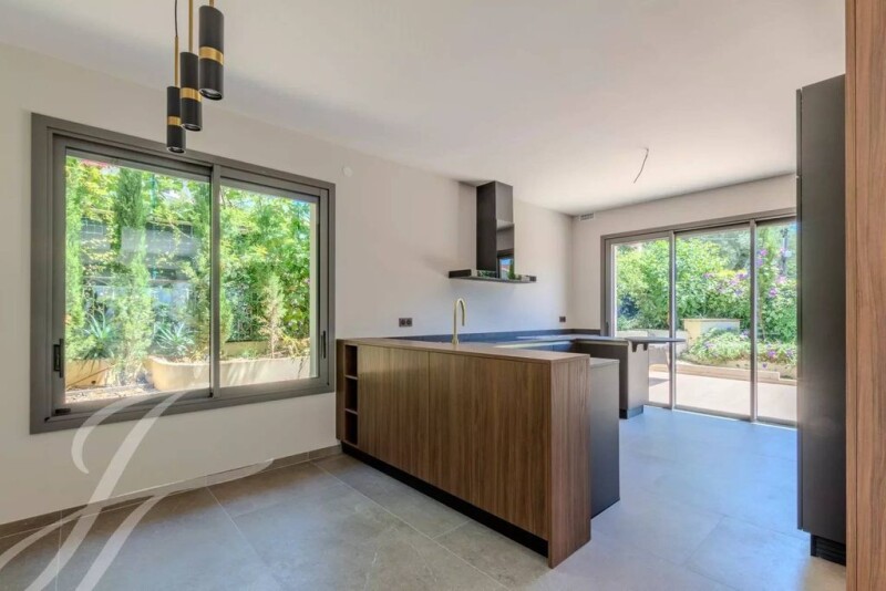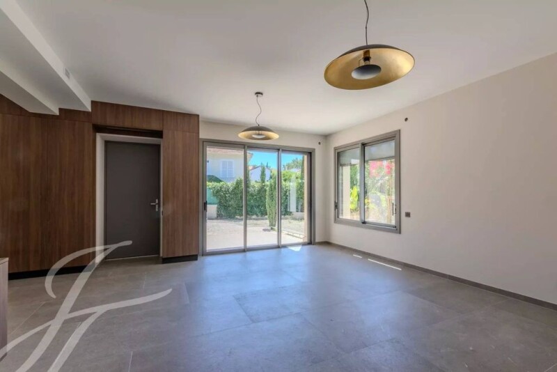 This magnificent 220 m² villa, located in a gated estate at Cap d'Antibes, comprises a living room and open-plan kitchen with large bay windows, providing remarkable natural light. This villa features a resolutely modern interior with high-quality fixtures and fittings. On the ground floor, a vast 80 m2 living space includes an open-plan kitchen opening onto the dining room, living room, bedroom with shower room and guest toilet. Upstairs, master suite with shower room, dressing room and large 50 m2 terrace. On the lower level, two large bedrooms, each with its own bathroom/shower and toilet. A cold room, laundry and utility room. Flat garden of 603 m2.