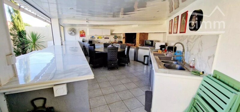 Exceptional property: Come and visit this magnificent villa of approximately 200m² in a green setting of more than 1000m² enclosed and wooded with a heated swimming pool, all 1km from the beach at Grau d'Agde. The villa is composed as follows: a large living room with fireplace, a fitted kitchen, a veranda, 4 bedrooms, two shower rooms, an office, a laundry room. You will also find a cellar and two garages. +++: air conditioning, equipped 30m² pool house, bowling alley, drilling, automatic watering, electric shutters and gates, thermodynamic water heater... A sure favorite to visit without delay!.