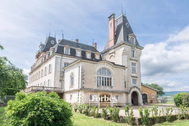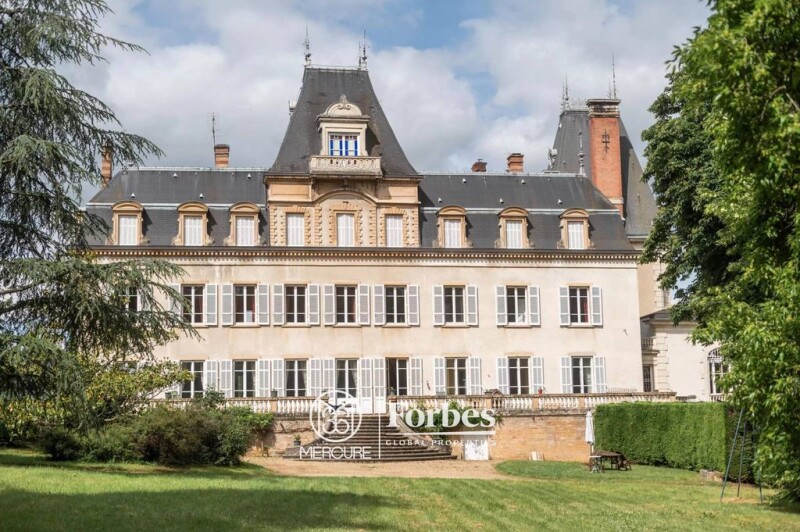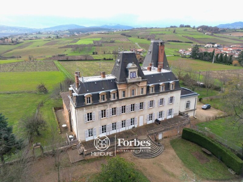 In the heart of Beaujolais, Mercure Forbes Global Properties presents this majestic chateau for sale, with a floor area of approximately 2,000 sqm. This vast historical property is ideally located near Lyon. This architectural gem, expanded by a tower in 1890, spans 2.8 hectares, including the chateau and its former golden stone wine cellar, meadows, and a partially wooded classified park. The Chateau – 1,282 sqm of living space The interior offers a beautiful balance between historical character and modern comfort. This elegant residence comprises reception rooms, lounges, dining rooms, spacious bedrooms, and beautiful vaulted cellars. The third floor is a complete sleeping area with five bedrooms and convertible attics. Architectural lines and remarkable features: mosaic floors, Toledo ceramics on the ceilings, fireplaces, stone staircase, herringbone parquet flooring, woodwork... West Dependency: a former golden stone wine cellar of 366 sqm (distributed over two levels) houses various rooms used as offices, workshops, storage, and a beautiful space of 157 sqm. Currently organized into two apartments and two professional premises, the property is perfectly adaptable and can cater to various uses: primary or secondary family residence, hotel, event venue, bed and breakfast, or holiday cottage... Amidst the vineyards, the estate benefits from a beautiful location and all-day sunshine. Between Lyon and Paris, this is a rare opportunity to acquire an exceptional residence offering a luxurious lifestyle in privacy. Villefranche-sur-Saône: 15 minutes Macon Loché TGV station (for access from Paris): 40 minutes Lyon: 40 minutes Lyon St-Exupéry Airport: 45 minutes Geneva: 2 hours Sale Price: €2,500,000 Fees payable by the seller Energy class: F Climate class: B Estimated annual energy costs for standard use: between €15,720 and €21,360 per year. Prices indexed as of January 1, 2021. Information on the risks to which this property is exposed is available on the Géorisques website: www.georisques.gouv.fr.