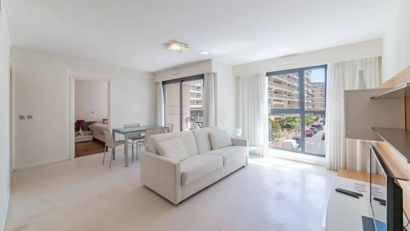Just a stone's throw from the Croisette, in a luxury residence with caretaker, this attractive 1-bedroom apartment benefits from a terrace and an ideal layout. It is located on the 2nd floor, its living area of approximately 54 m2 is composed as follows: - entrance hall, - living room, - fully-equipped kitchen, - bedroom with bathroom. The residence's interior design was entrusted to a renowned architect.