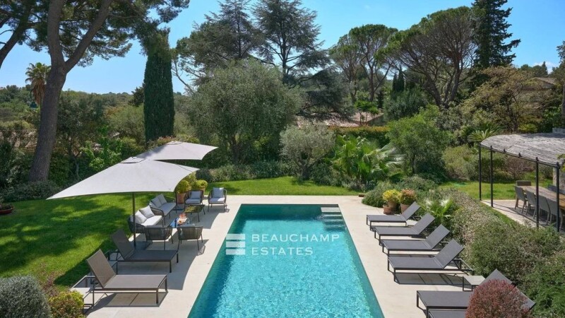 Sole Agent - Located in a gated residential estate, this bastide recently renovated by a renowned architect benefits from a green, quiet and unobstructed environment. It offers a total surface area of 500 sqm, plus 75 sqm of outbuildings (garage and pool house). The total land is about 2,500 sqm with a pool and large terraces, summer kitchen and lounge areas. The upper level (375 sqm) includes the living areas and 5 bedrooms with: - Entrance hall - Dressing room - Guest WC - Home cinema room - Double living room with fireplace opening onto covered terrace and summer lounge with outdoor fireplace and small sea view - Dining room opening onto summer outdoor living area - Large equipped kitchen opening onto a terrace with BBQ - Equipped laundry room with plenty of storage space and service door - Study room - Master bedroom of 50sqm with dressing room and bathroom opening onto covered terrace - 4 other Bedrooms with shower rooms opening onto a terrace. On the lower level (120 sqm): - 6th bedroom with shower room and covered terrace - Wine cellar - Bedroom/games room with 4 bunk beds - WC, bathroom, storage, sauna area -Sports room opening onto covered terrace - Convertible basement Annex of 75sqm: - 2 cars garage - 50sqm - Pool WC - Pool house fitted out with pergola Technical infos: - Floor heating - Double flow air conditioning in all bedrooms, home cinema room, office. - Alarm Charges: around 240€ per quarter electricity: 600€ per month Energy class : A (70kw) - Climat class : A (2kg) / estimated annual costs for standard use : between 2,051€ and 2,775€ (ref year 2021). Information on the risk to which this property is exposed is available on the Geohazards website : www.georisques.gouv.fr.