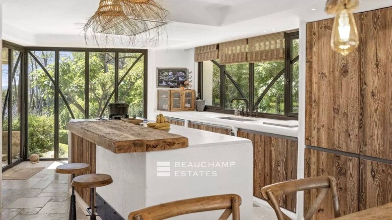 In the heart of lush and peaceful Mediterranean nature, this magnificent property embodies the Mougins dream, whether as a primary or secondary residence. Ideally located near the best international schools, restaurants, and shops, this property was designed by renowned architects who seamlessly integrated it into the surrounding pine forest. The elegant decor combines authentic materials such as Burgundy stone, lime, and solid wood, while offering modern comforts including underfloor heating, home automation, and a cold room. The five en-suite bedrooms provide unobstructed views of the landscaped garden, offering beautiful perspectives. The garden, approximately 4500 m², features various relaxation areas, allowing the residents to either find solitude or gather around the pool, pool house, sauna with hammam, and gym. A property that invites the creation of wonderful memories! Energy class : B - Climat class : A / estimated annual costs for standard use : between 1,315€ and 1,779€ (ref year 2021). Information on the risk to which this property is exposed is available on the Geohazards website : www.georisques.gouv.fr.