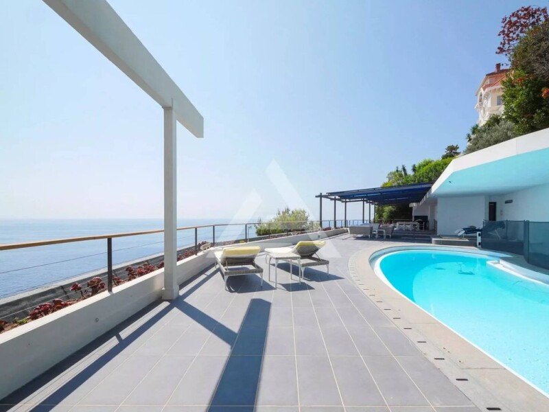 Located on the western slopes of Roquebrune Cap Martin, at the gateway to the Principality of Monaco. This villa overlooks the Mediterranean and its beaches, offering panoramic views of the sea and Cap Martin. With 650 sqm of living space and numerous terraces, it represents a rare opportunity for Côte d'Azur lovers looking for an exceptional property. The villa is nestled into the side of a cliff, in a peaceful, secluded setting that promises a unique living experience. The villa offers breathtaking panoramic views of Cap Martin and the old village of Roquebrune-Cap-Martin, with elegant architecture on several levels. First level: an independent flat comprising two bedrooms, including a sumptuous master suite with dressing room, bathroom and WC, and a second bedroom with wardrobe, shower room and WC. A vast living room with open-plan kitchen opens onto a terrace with sea views. Second level: This level is dedicated to relaxation and well-being, with a large sea-view terrace, a heated swimming pool, a summer kitchen, a sauna, a pool house and a jacuzzi. There is also a living room of over 100 sam with panoramic bay windows, a kitchen, a double lounge, an office and a toilet. Direct access to this area by lift or staircase. Third level: Three spacious bedrooms, each with en suite bathroom and WC, a laundry room, an ironing room and direct access to the caretaker's bedroom, also with en suite bathroom. A terrace leads to the caretaker's private area. Stairs lead up to an independent guest flat, comprising a living room, three bedrooms, an en suite bathroom, a shower room and a balcony with sea views. Fourth level: A large games room completes this exceptional property. Five parking spaces are also available, offering unrivalled living comfort. The fees are payable by the vendor unless otherwise stipulated in the mandate. Estimated annual energy costs for standard use: between €3,690 and €5,050. Average energy prices indexed in 2021. The property is not subject to co-ownership. The property is subject to an inventory of natural risks and pollution, which can be consulted on the Géorisques website: État des risques et pollution: réalisé (null).