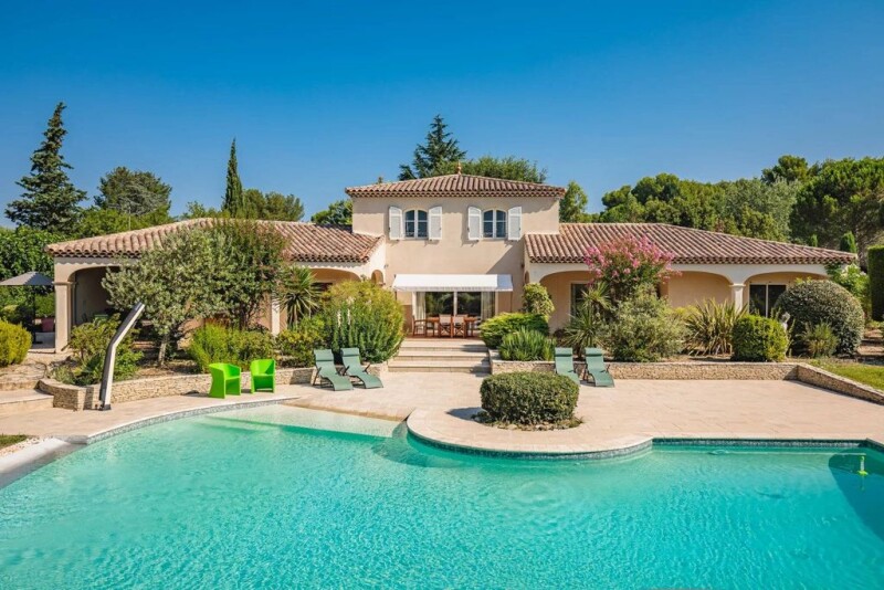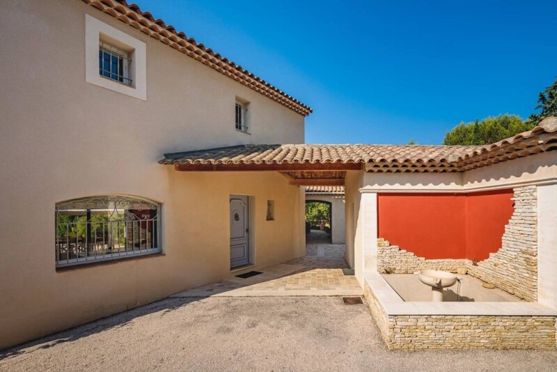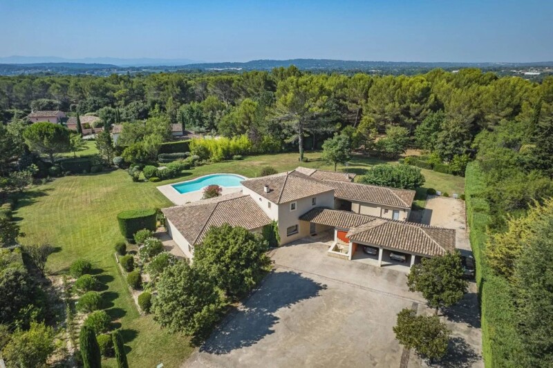 In a stunning bucolic and soothing environment, just 15 minutes from the city center of Aix-en-Provence, exceptional house designed by a renowned architect. It offers large volumes, quality services and a very pleasant living environment. On the ground floor you will find: a superb entrance hall decorated with Luberon stones, a large reception room, a living room with a sublime artist's fireplace, a dining room, an open kitchen, a cellar, an office with possibility to transform it into a bedroom, a billiard room, a large master suite with its bathroom and dressing room as well as an independent studio. Upstairs, 2 bedrooms with mezzanine and a large bathroom. A wine cellar completes this property. Outside, the landscaped park of more than 1 ha with Mediterranean species houses a 12 x 7 m salt pool. A patio-style interior courtyard offers an idyllic and privileged living space. Sizable garage. Possibility of making a heliport. Pleasing luminosity and absolute calm. Ideal location, close to all amenities. Charm, authenticity and sweetness of life in Provence.