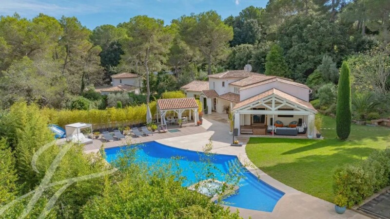 In the gated and secure Domaine Les Parcs de Mougins, this fully renovated 362 sq.m villa is set in a landscaped garden of approx. 3200 sq.m with swimming pool and jacuzzi. Offering a reception area with living room and fireplace, an open kitchen extended by a large covered terrace, 5 en suite bedrooms including the master bedroom, laundry and garage. An independent apartment with living room, kitchen and 2 en suite bedrooms completes this property.