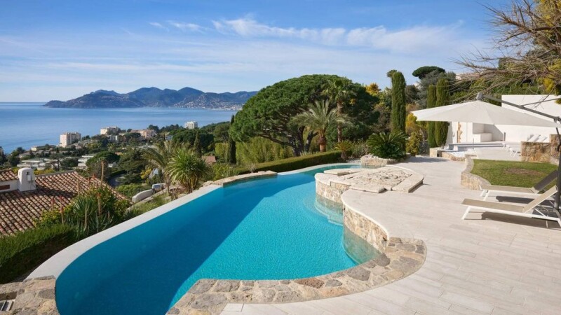 Magnificent Panoramic Sea View Villa – Cannes Nestled in an exclusive and elevated setting, this stunning renovated villa offers breathtaking panoramic views over the Bay of Cannes, Cap d'Antibes, and Le Suquet. Set within a beautifully landscaped 2,400 m3 garden, the property is a private sanctuary of luxury and elegance, featuring multiple tiered terraces, a heated swimming pool with Jacuzzi, and lush Mediterranean greenery, including majestic palm trees and elegant cypress trees. Refined Interiors & Seamless Indoor-Outdoor Living Designed to maximise natural light and breathtaking vistas, the villa’s open-plan design and floor-to-ceiling windows create a harmonious flow between indoor and outdoor spaces. - Grand entrance hall with guest WC - Spacious living and dining areas opening onto a panoramic terrace - High-end open-plan kitchen with separate utility room - Master suite with dressing room and luxurious en suite bathroom - Four additional bedrooms, each with en suite shower rooms - Private study - Independent studio apartment Exclusive Leisure & Wellness Features - Heated infinity swimming pool with Jacuzzi, set against a spectacular backdrop - State-of-the-art home cinema for an immersive entertainment experience - Private fitness room - Multiple tiered terraces, perfect for outdoor dining and relaxation - Lush gardens with tall cypress trees and swaying palm trees, enhancing the Mediterranean ambiance Exceptional Security & Parking - Electric gates ensuring absolute privacy and security - Pool room & workshop - Basement with potential for further customisation - Two-car garage & additional five-car garage This extraordinary villa blends sophisticated modern comforts with timeless Riviera charm, offering an unparalleled lifestyle in one of Cannes' most sought-after locations. A rare opportunity to own a masterpiece of luxury on the French Riviera.
