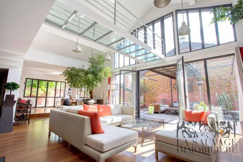 Ideally located in close proximity to the capital, this carefully reinvented former industrial building showcases an architectural prowess that emphasizes grand proportions and distinguished finishes, giving rise to a residence of luxurious and refined magnitude. Integrated within an exclusive condominium of merely six privileged individuals, this property embodies the essence of a harmonious and discreet lifestyle. Like a well-kept secret, a private entrance hall leads to the main entrance of this architectural gem which, bathed in an abundance of natural light and spanning three levels, offers a spacious area of nearly 510 square meters, accompanied by more than 230 square meters of enchanting terraces and patios, culminating in a total area of approximately 760 square meters. Upon entering the ground floor, one is welcomed by an array of amenities including a laundry space, a versatile workshop, an expansive office or a first spacious bedroom, and a cinema room designed for sophisticated entertainment and relaxation. In continuation, two other sumptuous bedrooms extend, accompanied by exquisite bathroom and shower facilities. Furthermore, an independent apartment complements this composition, affording each space privileged access to lush terraces and a meticulously landscaped patio, creating a harmonious indoor-outdoor living atmosphere. The essence of the loft truly unfolds on the first floor, centered around a cathedral-like living space that extends its elegance across an impressive area of nearly 150 square meters, encompassing a bedroom, a lounge, a sitting area, a dining room, and an open kitchen augmented by an adjoining pantry, where moments transform into cherished memories. A true architectural masterpiece where light and space merge in a hypnotic choreography, gracefully opening onto a collection of terraces as a natural extension of this exceptional living space. The pinnacle of this elegant abode is undoubtedly crowned by the master suite occupying the entirety of the third floor. This opulent sanctuary comprises a bathroom and a spacious dressing area, both extending onto a private terrace, offering an exclusive escape. This distinguished property also presents an ideal opportunity for professional practice, thanks to its meticulously planned layout and versatility that allows for a blend of commercial and residential uses. Information and visits 7 days a week. Agency fees at the charge of the seller. État des risques et pollution: en cours (null).