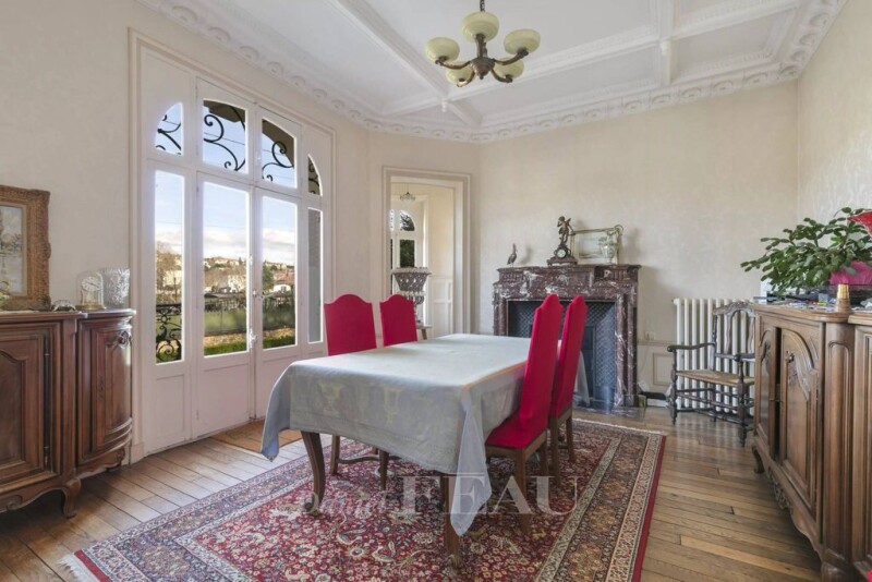 This elegant early 20th century villa with annexes is set in about 1.5 hectares of grounds. The main house includes a living/reception room and dining room with a fireplace, a kitchen, and a magnificent near 44 sqm billiard room featuring 5-metre high ceilings and mahogany panelling opening onto a terrace with a pergola. Upstairs are three bedrooms including a master, a bathroom and a separate wc. Three further bedrooms, a dressing room and a wc are on the 2nd floor. With a convertible attic. On a total basement with a good ceiling height. The caretaker’s lodge includes a living room, a kitchen/dining room, a bedroom with a fireplace, and a shower room/wc. A garage with a workshop includes a 2-room apartment to renovate and an attic. In a prime location enjoying a view of the Seine, the property oozes with period charm and features a tiled façade, wrought iron, mosaic floor tiles, parquet flooring, marble fireplaces, mouldings and stained glass. It is accessed by means of a peaceful cul-de-sac on the riverside. A 12-minute walk from the station, close to the schools including renowned Notre-Dame Les Oiseaux High School, 5 minutes from the nearest shops, and benefiting from easy motorway access. État des risques et pollution: réalisé (2022-05-11).