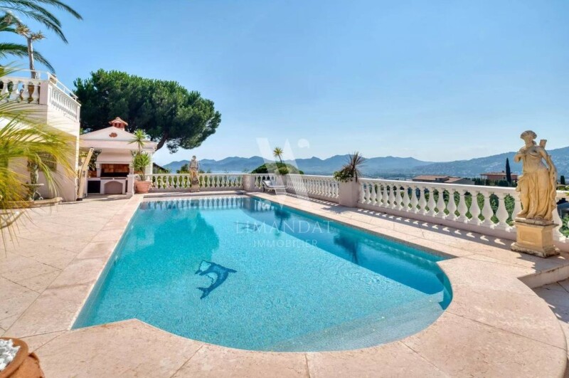 SOLE AGENT - Located in the prestigious Croix des Gardes district, this luminous villa sits on a beautifully landscaped 4000 m² plot. A majestic driveway leads to this exceptional property, offering tranquility and serenity with stunning sea views through its large bay windows. The grand entrance hall opens onto a triple living room with impressive high ceilings, creating a spacious and elegant atmosphere. The independent kitchen is fully equipped to meet all your culinary needs. A mezzanine leads to two master bedrooms with en-suite bathrooms and dressing rooms, as well as three additional en-suite bedrooms, providing comfort and privacy. The extensive marble terraces surround the villa, allowing direct access from the bedrooms to the outside through large French doors, adding both privacy and independence. A separate Provencal-style apartment complements this property, featuring a living room, kitchen, bathroom, and bedroom, opening onto a terrace with views of the pool and the sea. With approximately 950 square meters of living space, this villa stands out with its imposing columns embedded in the rock, giving it a truly noble and imperial appearance. Marble, used both inside and out, adds an extra touch of luxury. The spacious rooms, large windows, and abundant natural light make this villa unique. At the entrance, two garages, parking for three cars, and a caretaker's apartment provide additional amenities to this exceptional property. ENERGY CLASS: 131 C CLIMATE CLASS: 4 A ECD drawn up on 08/30/2023 Estimated average annual energy costs for standard use, based on 2021 energy prices, between 3110 € and 4280 € (subscriptions included) Fees charge seller Information on the risks to which this property is exposed is available on the Géorisques website georisques.gouv.fr.