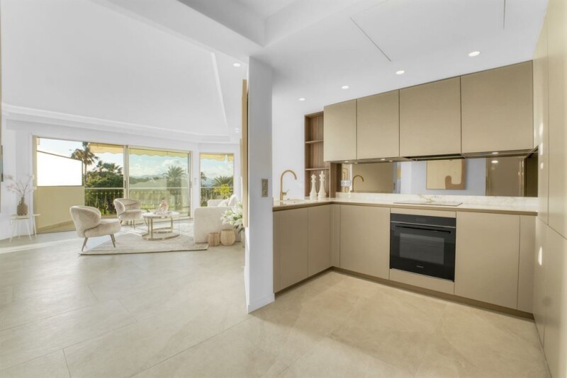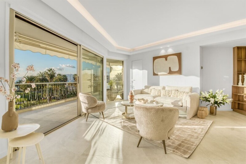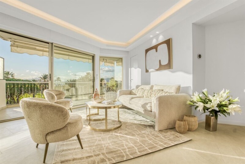Superb location for this beautiful 3-room apartment with a surface area of 75 m2, located on a high floor and enjoying beautiful views of the sea and the Esterel massif. Located in the heart of the legendary Croisette, this luxurious apartment mainly offers a very bright double living room opening onto a 24 m2 terrace facing the sea, an equipped American kitchen. For the night area, 2 en-suite bedrooms with their shower rooms and wardrobes. Plenty of storage space and a library. Completely renovated and redecorated with refined services, it ensures modern comfort and a unique living environment. It is sold with a cellar and private parking. A must-see. Contact us today about this luxury apartment with sea view on the famous Croisette in Cannes.
