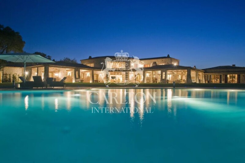This one-of-a-kind luxury estate boasts some of the most breathtaking views on the French Riviera. Relax, unwind and gaze upon the bay of Cannes, the Lerins Islands, and the Esterel Mountains from this secluded hilltop estate. This prestigious home is truly unique and has set a new benchmark for luxury homes in the Cote d'Azur. Classified as a private resort, this remarkable property includes 30 hectares (75 acres) of beautifully landscaped gardens, lavender fields, mature olive groves with century-old olive trees, lawns, and natural meadows. The Manor House itself is approximately 1000m2 (or 10,000ft2) of floor space, providing 5 superb suites including a single floor dedicated to the outstanding master suite. The modern open plan design offers vast reception rooms include a salon, lounge, dining room, library, and a study. This majestic mansion is truly built to entertain friends and family and has an additional area dedicated to entertainment, which includes a bar/nightclub and Games room. -- The main villa has a traditional French kitchen, with an abundance of counter space and an informal dining area. The kitchen is finished to an exceptionally high standard - with a large island counter, marble countertops, terracotta floor tiles, and elegantly high ceilings. Finally, this wonderful home is completed with an independent gym, fitness suite, and spa area. In total, this mansion has a collective of 17 bedrooms found throughout the main residence and its accompanying three independent villas. In true resort fashion, this prestigious property has a tennis court, three heated swimming pools, a helipad, several garages, a self-contained staff cottage, and equestrian facilities that can be adapted to stables. This private resort is just a 30-minute drive from the dazzling city of Cannes. Cannes has its own airport that accommodates private flights - located just 10 minutes from the property. The Cannes-Mandelieu airport can be accessed by car or helicopter from the residence. In summary, this prestigious property is a private resort, and luxury estate in one - offering secluded luxury, astounding views, an abundance of space, and exceptional luxury.