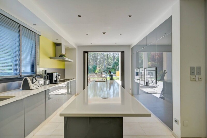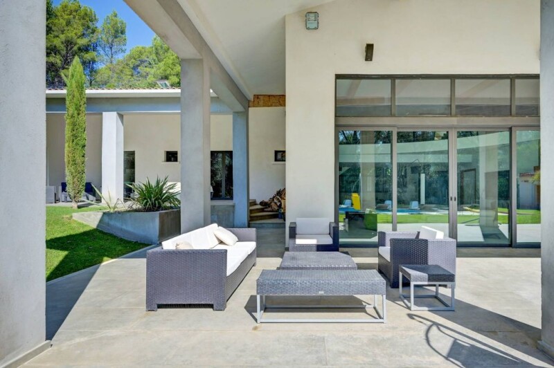 Town of Auriol near the city center, 20 minutes from Aix En Provence Contemporary villa built in 2011 of 272 m2 on 5200 m2 of wooded and landscaped land with swimming pool 10X4,5 and pool house. The house has an entrance serving a living room, dining room with fireplace home cinema, a kitchen separated by a sliding door , high quality appliances Gaggenau dining area . The night part offers 3 bedrooms including a master suite with dressing room, many closets, a bathroom with double shower basin, a bathroom and toilet, a dressing room. On the 1st floor a living space office library mezzanine overlooking the living room, a bedroom under the attic with an area of 80m2 completes this property. In the basement, a large garage, several storage spaces, a gym. Outside you will enjoy the relaxation areas under the covered terrace or poolside. The house is equipped with solar panel, underfloor heating and air conditioning. In addition it has a central vacuum for the whole house. We particularly appreciate its superb exposure, excellent condition and excellent brightness. Aix-en-Provence Sotheby’s International realty, the international reference for luxury real estate. Mandate 1206.