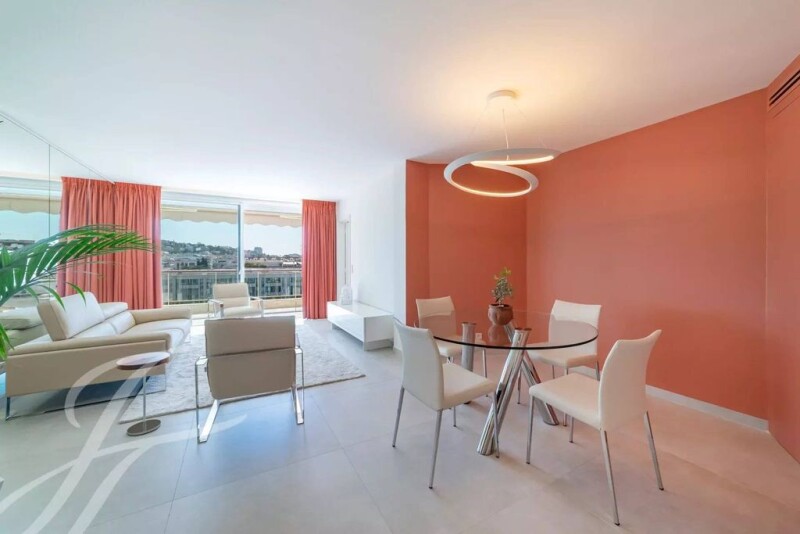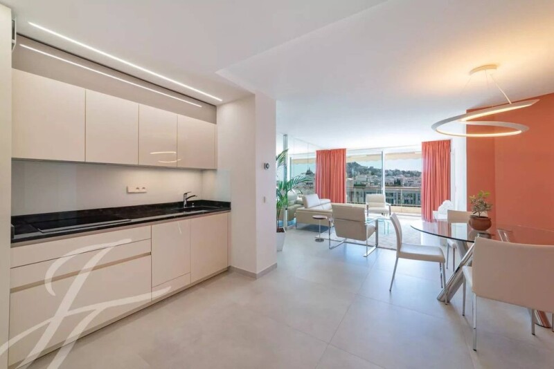 Boasting an exceptional location in the heart of the Croisette, this top-floor flat boasts stunning sea views and overlooks the renowned Hotel Mondrian's sublime Mediterranean garden, with direct access to rue d'Antibes. Completely renovated in a contemporary style, this 3-bedroom flat offers 93.51 sq.m of living space, with a lovely 14.66 sq.m terrace and a 1.77 sq.m balcony. It is equipped with reversible air conditioning, home automation system and has refined interior design. The residence has a 7/7 concierge-service from 8am to 8pm. Two cellars and a basement garage complete this rare quality property.