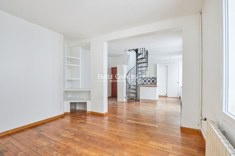 Parmentier/Saint Maur - Nestled in a private lane, on the first and top floor of a town house, discover this uniquely charming duplex. With a surface area of 58.02 m² Loi Carrez (92 m² on the ground), it features a vast 21m² living room bathed in light thanks to a series of unoverlooked windows, an open-plan kitchen, a bedroom and a bathroom. Upstairs, a second bedroom is accompanied by an office space or a possible third bedroom. The property combines absolute calm and luminosity in a rare and sought-after location. Condominiums of 6 units (No proceedings in progress). Annual expenses : 1116 euros.